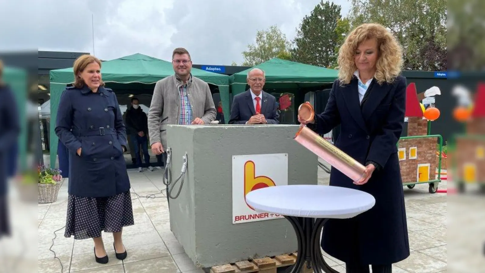 Für die „Archäologen der Zukunft“ wurde eine Zeitkapsel mit aktuellen Münzen, Zeitungen, Bauplänen und den Wünschen der Kinder gefüllt. Dann bekamen die Ehrengäste die Aufgabe den wuchtigen Grundstein aus Beton mit Mörtel zu bestreichen, damit der Deckel festgemauert werden konnte. Bezirksausschussvorsitzender Sebastian Kriesel erinnerte an die Anfänge des Vereins, der sich 1969 als Elterninitiative gegründet hatte. 1979 war der Grundstein für das alte Förderzentrum gelegt worden. Doch die Einrichtung ist in die Jahre gekommen. „Es gibt heute mehr Angebote, die untergebracht werden müssen“, so Kriesel. Deswegen ist ein Neubau notwendig geworden. Wenn er fertig ist, dann werden 74 Kinder, Jugendliche und junge Erwachsene mit schweren Mehrfachbehinderungen dort gefördert werden.