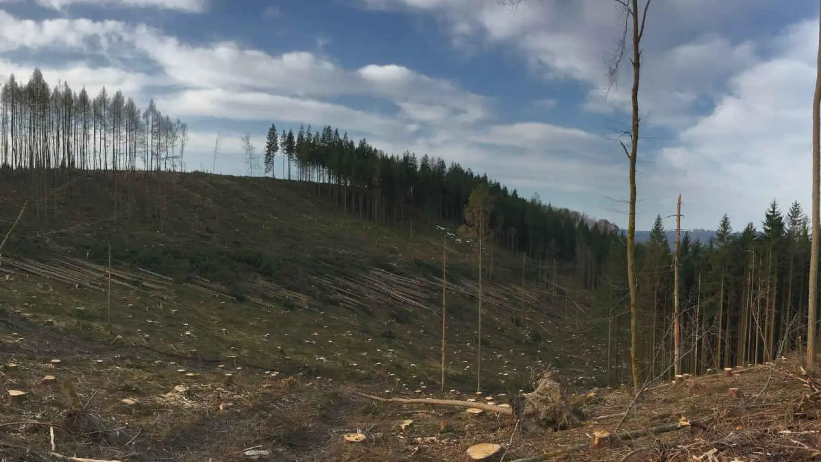 Zwischen 2018 und 2020 wurde ganz Mitteleuropa von mehreren ungewöhnlich starken Dürre- und Hitzeperioden heimgesucht. Dies schwächte die Bäume nachhaltig. Sie starben ab oder fielen großflächigen Notfällungen zum Opfer. Kahlschläge sind oft die letzte Maßnahme bei massivem Schädlingsbefall, um – im Fall von Fichten – dem Borkenkäfer die Nahrung zu entziehen und dadurch seine Ausbreitung zu verhindern.