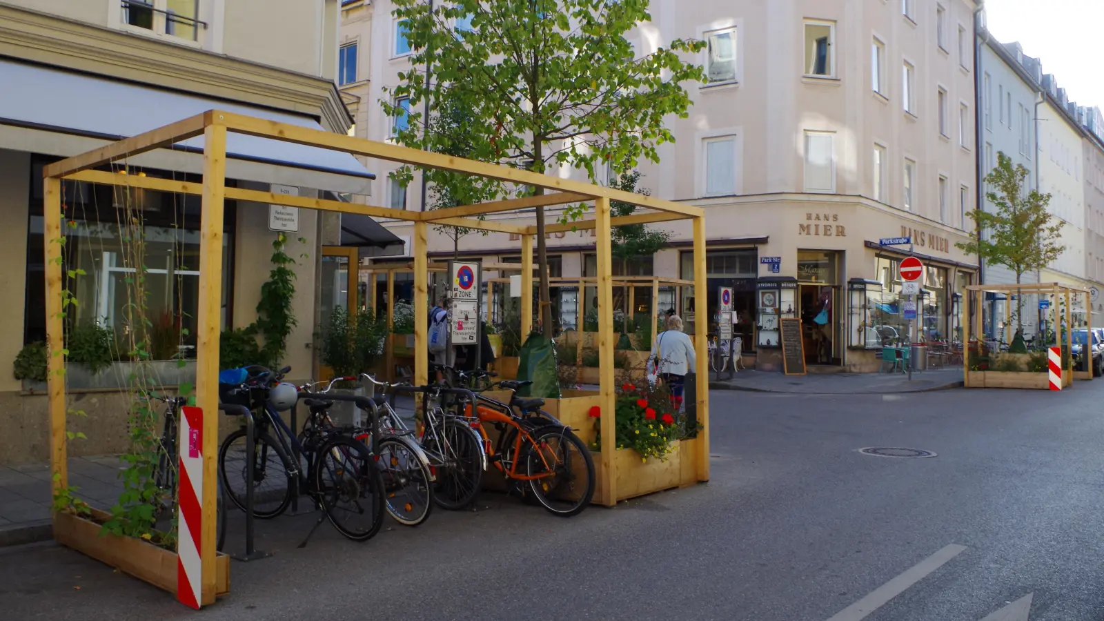 2021 hat „Freiraum-Viertel“ seine ersten Parklets in der Landwehrstraße aufgebaut und sich damit in die von Bürgern initiierten Nachhaltigkeits-Projekte eingereiht, die aufzeigen, wie Stadtraum neu genutzt werden kann. Aus der Bürgerinitiative ist inzwischen eine gemeinnützige Gesellschaft geworden, die sich nach wie vor für nachhaltige Projekte im Stadtraum stark macht. „Wir wollen eine Werkbank der Verkehrswende bzw. der Stadtumgestaltung sein“, erklärt Martin Laschewski, Mitbegründer der Initiative. In Neuhausen-Nymphenburg will „Freiraum-Viertel“ nun gern ein „Ridelet“ aufbauen und beantragte dafür einen Zuschuss in Höhe von 4.895 Euro beim BA. Das Ridelet böte Rädern einen Stellplatz und würde „darüber hinaus einen Mehrwert haben“, wie Martin Laschewski sagt. Aufgrund der Begrünung wäre das Konstrukt sowohl schön als auch wertvoll fürs Klima.