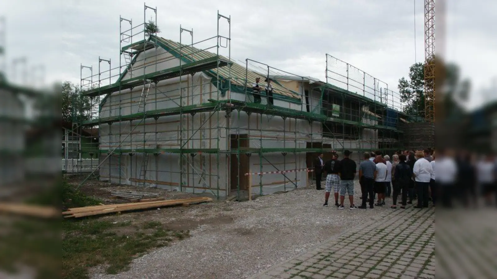 Rund 2,7 Millionen Euro wird das Gebäude ohne die Inneneinrichtung kosten. Bürgermeister Thomas Feistl konnte zum Hebauf neben Firmenvertretern, dem Gemeinderat auch die Nachbarn zu der kleinen Feierstunde auf der Baustelle begrüßen.