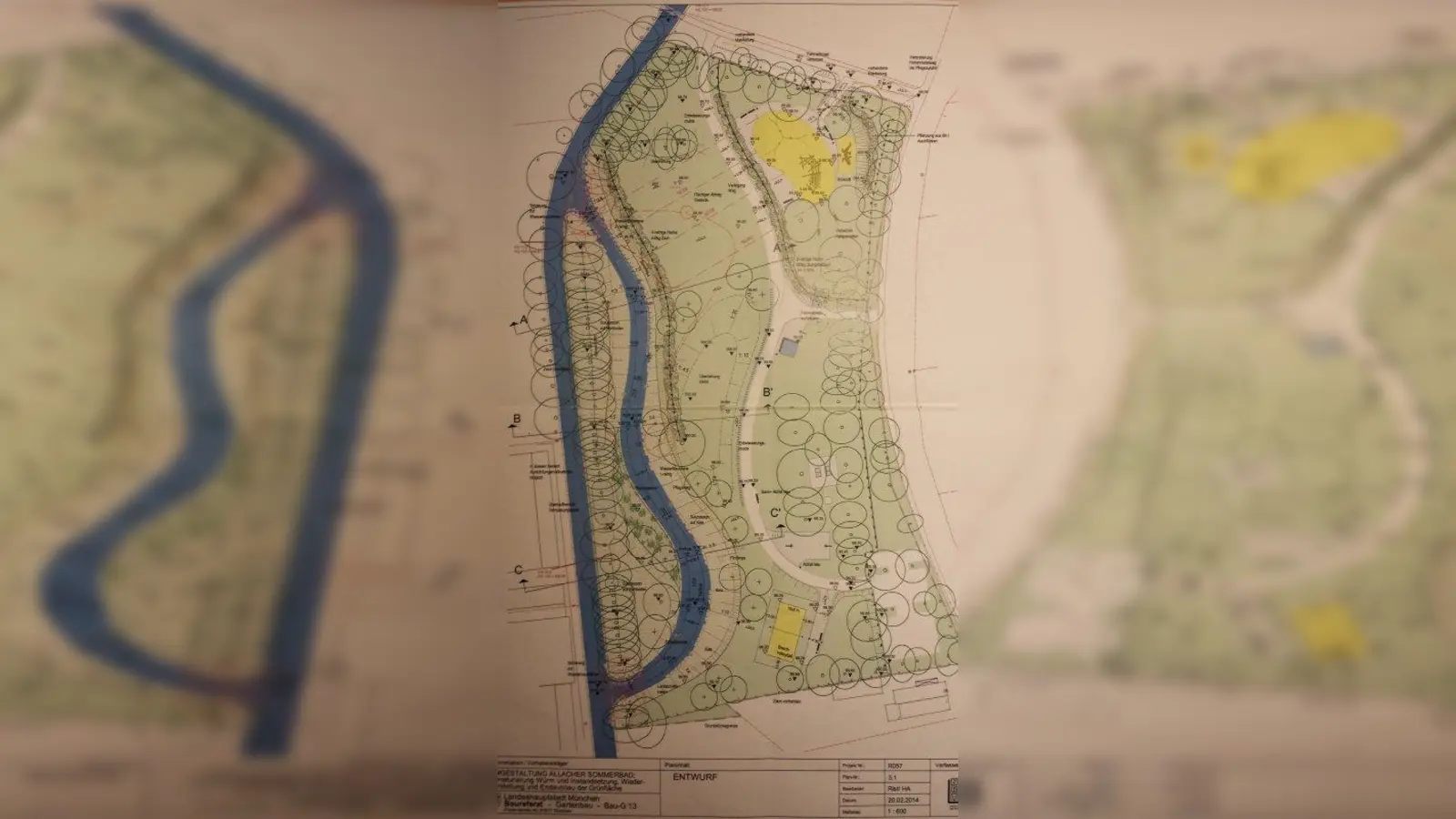 Heute liegt ein neuer und sicher wesentlich besserer Plan (Bild 4) vor, der mit den Stadtteilpolitikern abgesprochen und von diesen auch weitestgehend gutgeheißen wurde. Am 25.02.2014 hatte das Referat für Gesundheit und Umwelt dem BA 23 die Realisierung des 2. Bauabschnitts mit Seitenarm der Würm für die öffentliche Grünfläche, die nach dem Rückbau des Allacher Bades gebaut worden war, mitgeteilt.