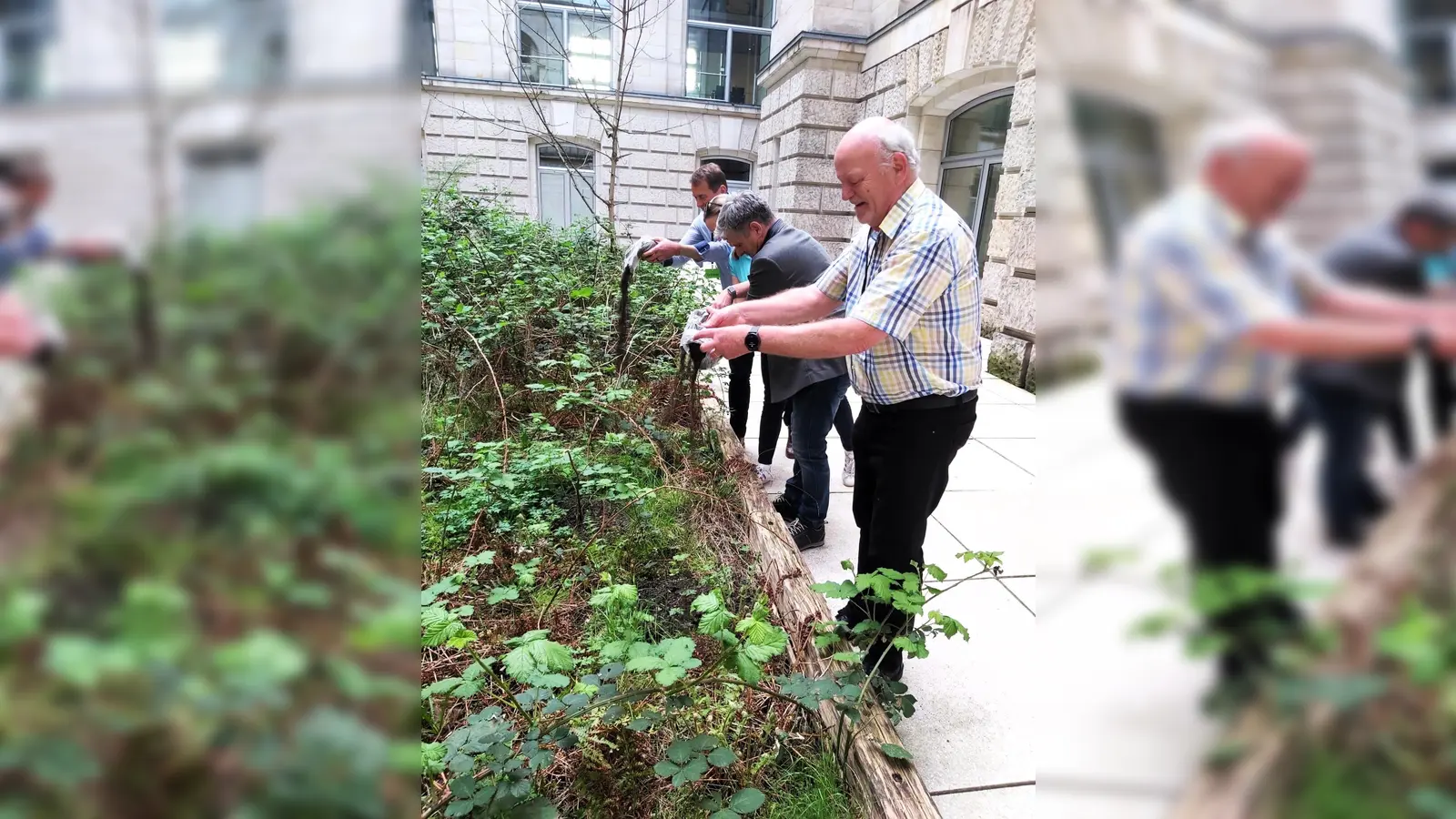 Der Aufforderung des Kunstprojektes „Der Bevölkerung“ von Hans Haacke, jährlich Erde aus den Wahlkreisen einzubringen, kam Hermann Krusch, der stellvertretende Vorsitzender des Landkreis-Seniorenbeiratsnach. Das wachsende Biotop um den großen Schriftzug „Der Bevölkerung“ bleibt darüber hinaus unangetastet. Die Pflanzen wachsen aus zufällig gelandeten oder in den Erdbeiträgen enthaltenen Samen. Über 400 verschiedene Erden wurden bereits eingebracht – nun auch aus dem Landkreis Dachau.