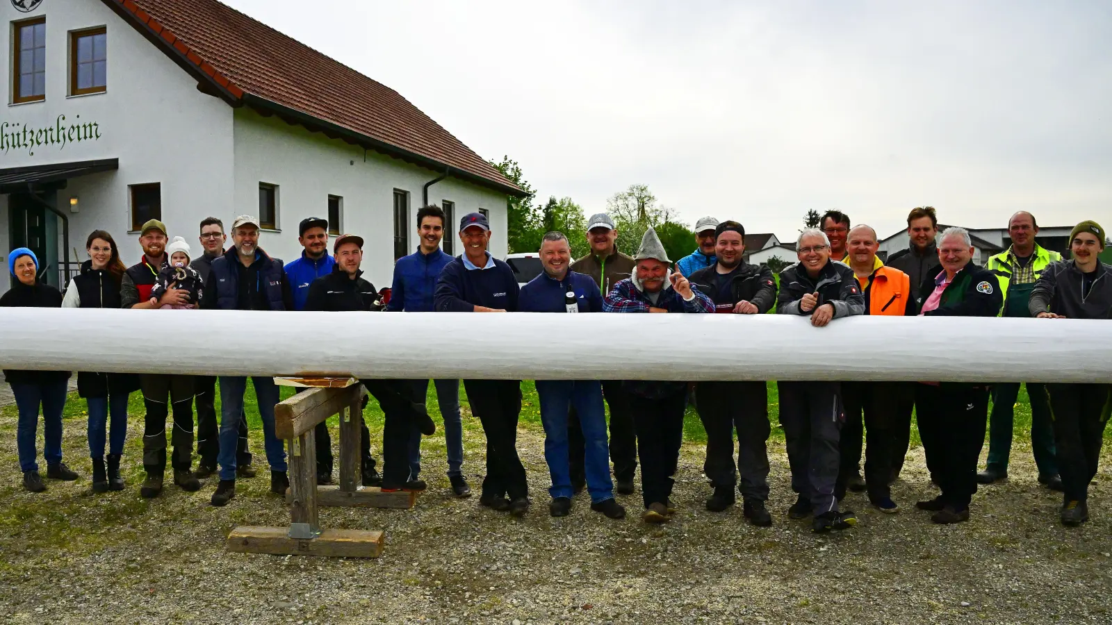 GADEN Der Gadener Maibaum ist zu Hause! Nach problemlosem Transport traf das Traditionsstangerl am Samstagnachmittag vor dem Schützenheim ein und wurde auch sogleich weiß grundiert. Der Baum weist im Rohmaß eine Länge von 33,33 Metern auf und wird nun streng bewacht. Aufgestellt wird er unter Führung des Schützenvereins „Gemütlichkeit“ am Donnerstag, 1. Mai, um 11 Uhr – Speis und Trank sind dabei natürlich reichlich vorhanden.