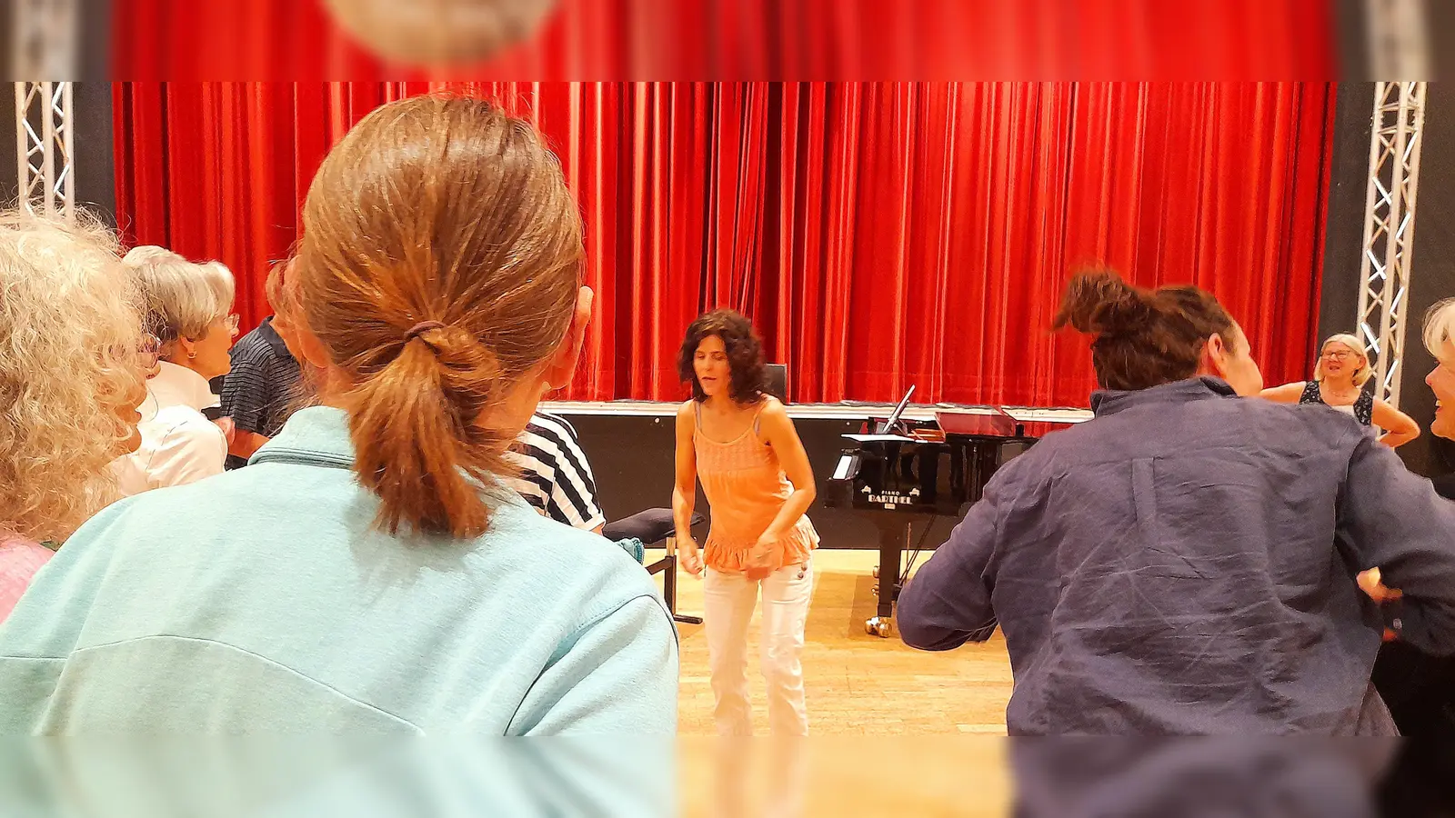 Körpereinsatz und Gedächtnisleistung waren beim ersten Stimmbildungsevent des neuen Dachauer Chors gefordert. Ein neues Stück ohne Noten und ohne Text zu lernen, und zwar drei- und vierstimmig ist schon eine Herausforderung. Obwohl der Chor sich zum ersten Mal traf und manche zum ersten Mal in einem Chor sangen, gelang es super! Und vor allem: es machte großen Spaß.