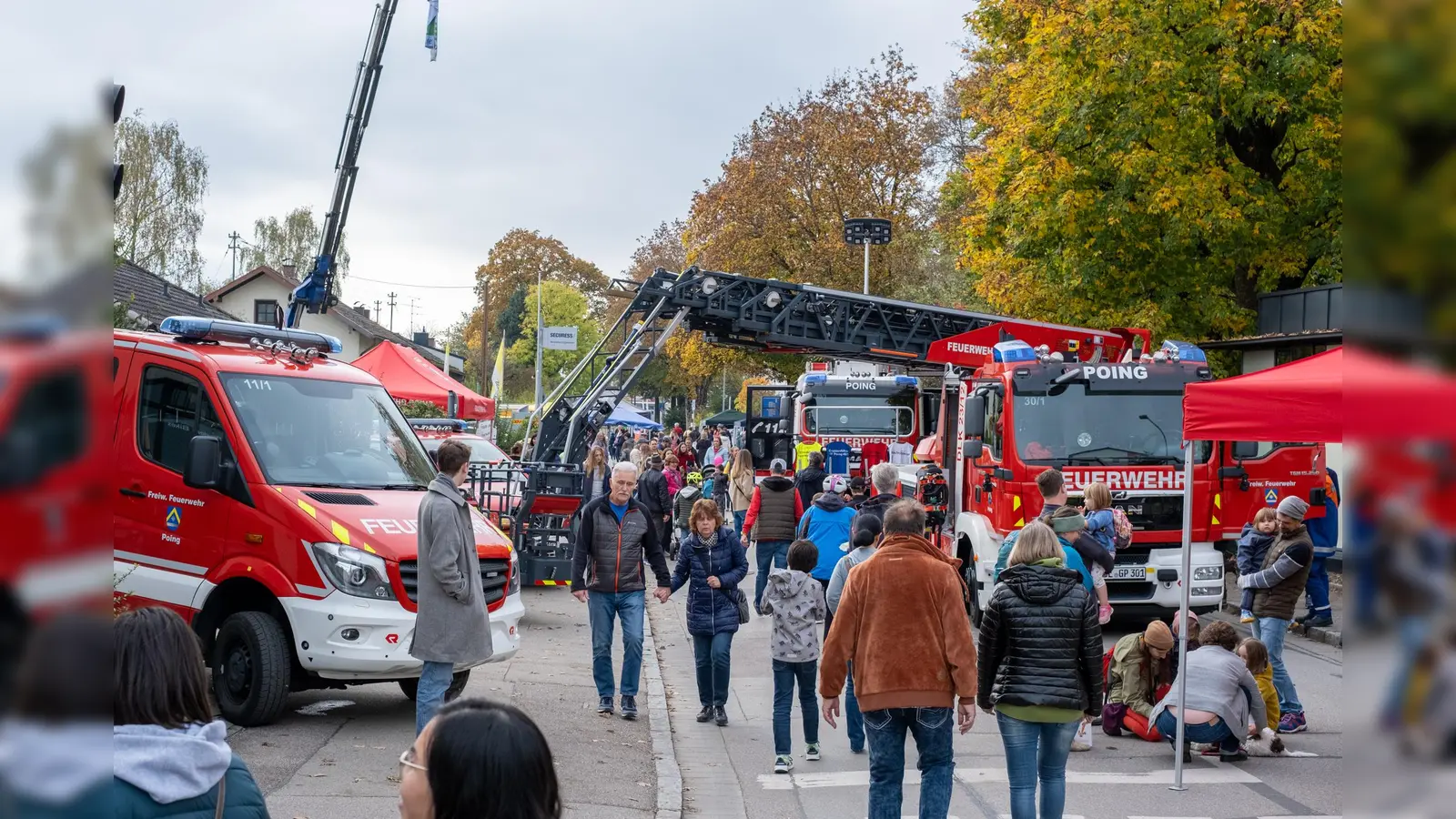 Die Poinger Feuerwehr hatte in der Bahnhofstraße einen Großeinsatz. Mit allen Fahrzeugklassen zeigten die ehrenamtlichen Feuerwehrleute, für welche Einsätze welche Werkzeuge gebraucht werden und ließen geduldig Kinder ihren Traum von Feuerwehrmann in die Handykameras lächeln. Der nächste Marktsonntag in Poing findet am 1. Juni 2025 statt.