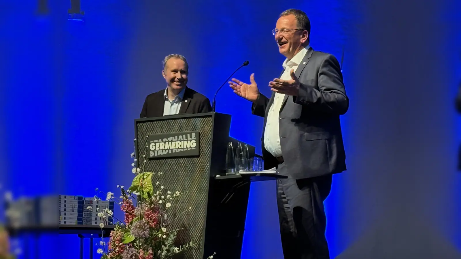 Katrin Schmidt und Jürgen Andre, Vorsitzende des Wirtschaftsverbandes Germering, stellten das Projekt „GermeRing“ vor, „unser Beitrag für ein soziales Miteinander“, so Schmidt. Dabei sind Unternehmen aufgefordert durch einen Aufkleber an ihrem Geschäft zu signalisieren, dass Bürger bei ihnen Hilfe bei kleinen Notlagen (Pflaster, ein Glas Wasser, Telefon, eine Sitzgelegenheit …) bekommen können.