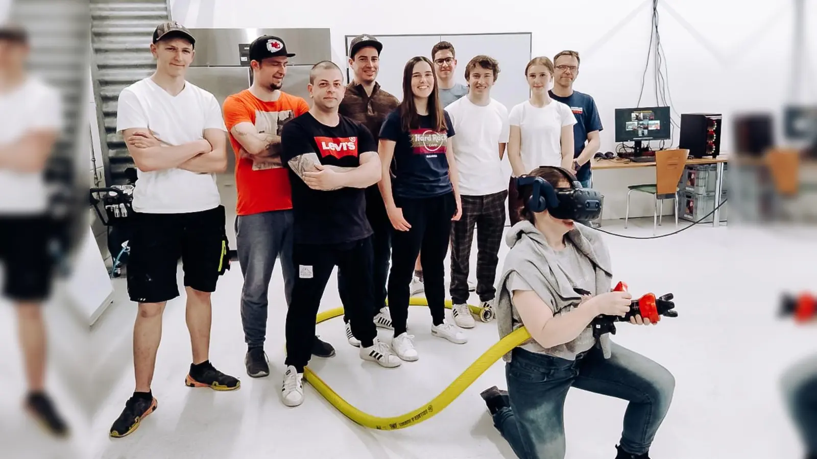Auch das Arbeiten unter „Nullsicht“ wurde realistisch simuliert: Der Angriffstrupp musste sich im völlig verrauchten Gebäude orientieren, gefüllte Schläuche verlegen, gezielt Räume nach Übungspuppen oder simulierten Brandherden absuchen oder mit einem echten Strahlrohr den richtigen Wassereinsatz üben.