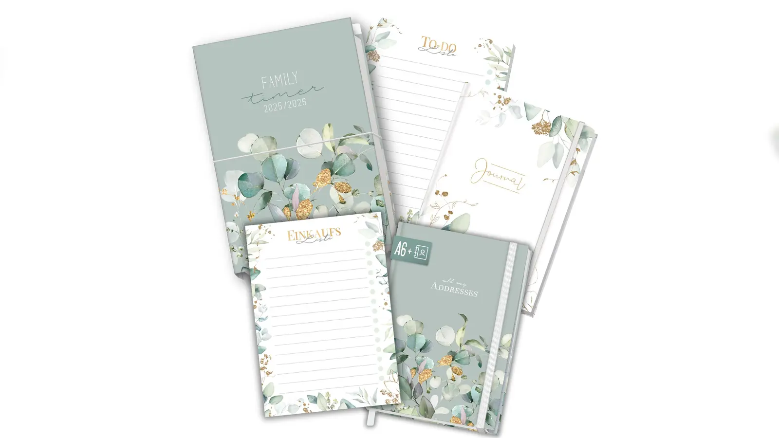 Und das ist im Paket enthalten: Der Häfft-Family-Timer 25/26, der mit dem neuen Schul- und Kitajahr in die nächste Saison übergeht. In Wochenspalten berücksichtigt er bis zu vier Familienmitglieder 18 Monate lang Tag für Tag. Mehr noch: Neben Monatsvorschaltseiten ist der Kalender im kompakten Format A5+ mit allerhand Tools ausgestattet, mit einer Notfallseite, vielen Listen zum Abhaken, Ferienübersichten, Arzt- und Impf-Terminen sowie mit praktischen Alltags-Tipps. Damit gilt er als Allzweckwaffe, der Eltern in vielerlei Lebenslagen kräftig unter die Arme greift. Ergänzend zum Buchkalender verschenkt der Häfft-Verlag funktionale Medien aus seiner schicken Papeterie-Linie paper&you.Allen voran die Einkaufs- und To-do-Listen zum Abhaken in Form von je 50-Blatt-Abreißblöcken. Auch das Adressbuch in A6+ mit Platz für 560 Adress-Einträge darf nicht fehlen. Analog zum Häfft-Buchkalender verfügt er über jede Menge Extras. So sind darin ein Geburtstagskalender, eine Passwortliste und Seiten für eigene Notizen integriert.