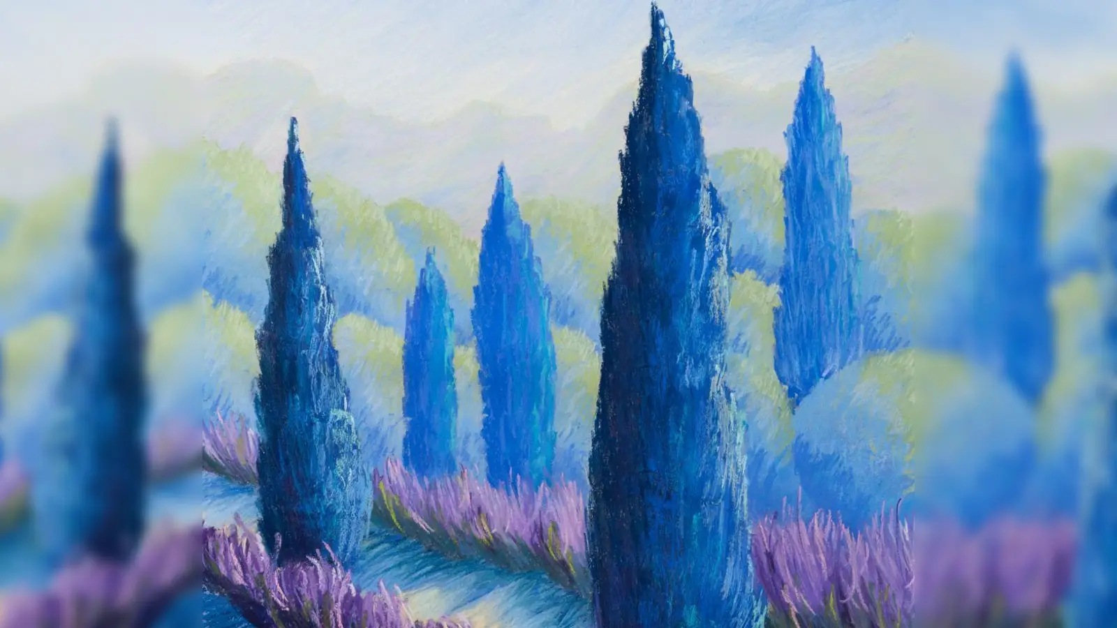 Natalia Chikaleva geht es bei ihrer Kunst nicht darum, einfach abzubilden, was sie sieht - vielmehr möchte sie zeigen, was sie empfindet. Landschaften sind für sie nicht bloße Orte, sondern Emotionen. Mit Farbe, Licht und Form versucht sie, Stimmungen zu erschaffen, die über das rein Sichtbare hinausreichen. So entstehen etwa blaue Zypressen, rosa Schatten oder strahlende Nachthimmel – gezielt eingesetzte Farben, die das Unsichtbare fühlbar machen sollen.