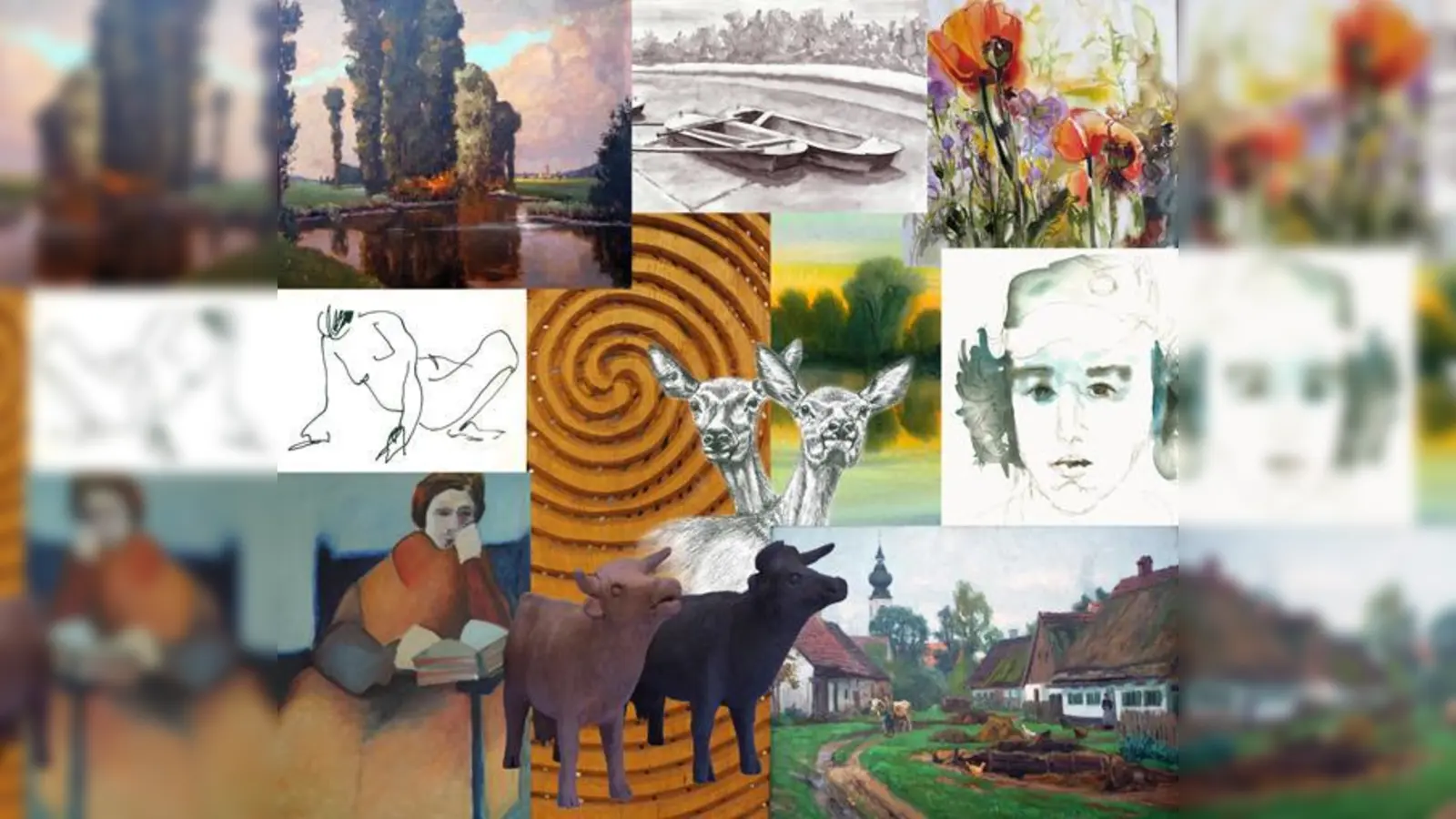 Mit rund 150 Exponaten wird eine Vielzahl an Stilrichtungen und Techniken, wie beispielsweise Werke in Öl, Acryl, Aquarell, Radierungen und Zeichnungen, sowie Skulpturen aus Holz und Keramik gezeigt. Die Motive reichen von historischen Dorf- und Hofszenen bis Landschaften, Blumen und Tieren, von Portraits bis zu Aktbildern.