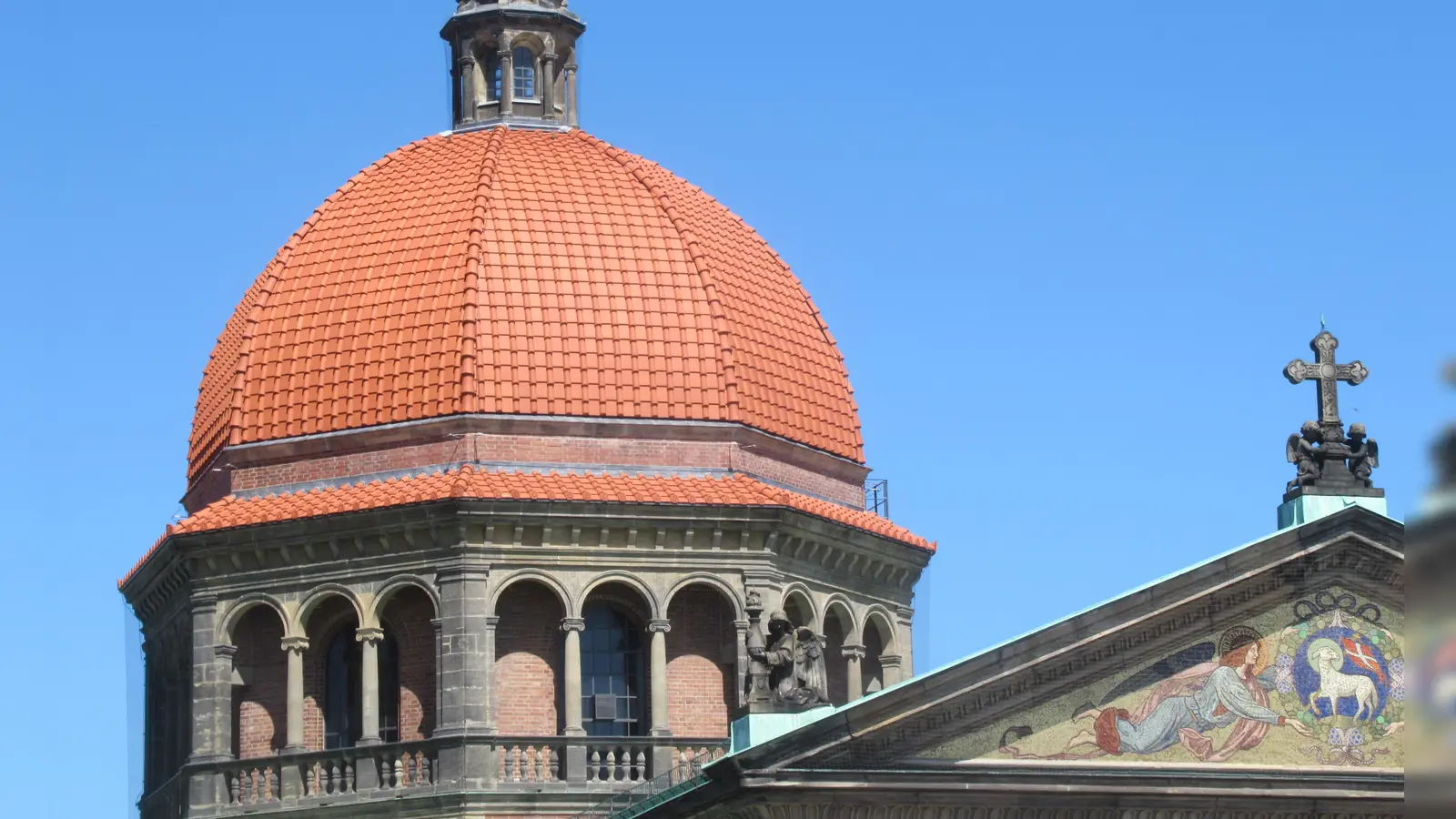 Aus grün wurde rot: Statt des oxidierten Kupferdaches, das weitgehend korrodiert war, trägt die Kuppel der Pfarrkirche St. Ursula jetzt ein rotes Ziegeldach. Damit kehrt man zurück zu den Ursprüngen, denn auch die 1894 bis 1897 von Architekt August Thiersch errichtete Kuppel war nach antik-römischen Vorbildern mit Ziegeln eingedeckt. Seit 2013 war die Kuppel aus Sicherheitsgründen eingerüstet, und die notwenige Sanierung erwies sich als äußerst kompliziert. Nach sechs Jahren ist die Kuppel jetzt nicht nur frei vom Gerüst, sondern sie wird auch festlich beleuchtet bei einem Fest aus Anlass der gelungenen Sanierung am Samstag, 19. Oktober, ab 19 Uhr, in der Pfarrkirche St. Ursula am Kaiserplatz. Eingeladen sind alle Interessierten zu einem Umtrunk im Portikus und einer Begehung in und um die Kirche herum.