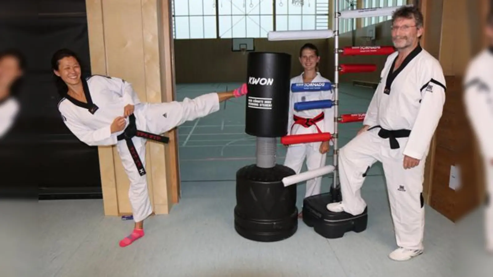 Bei den ersten, angekündigten Lockerungen reagierte die Gemeinde schnell und vermittelte dem Verein ein Fußballfeld des sich solidarisch zeigenden SC Baldham. Jetzt konnte man in Kleingruppen zumindest die kontaktfreien Teile des Taekwondo wieder life üben. Dieses Training fruchtete in vier Bronzemedaillen bei der online-Teilnahme der Vaterstettener an der ersten digitalen BTU Poomsae Meisterschaft im Juli. Mit der Hallenöffnung kurz nach Pfingsten und dem Rückzug vom Fußballfeld entschied der Vorstand aber, dass man sich Alternativen überlegen muss, um auch mit Kontakt z.B. wieder Vollkontakt-Wettkampf trainieren zu können. Daher wurden desinfizierbare Boxsäcke und Dummies in verschiedenen Größen angeschafft, die im Training insbesondere auch von den Kindern gerne angenommen wurden.