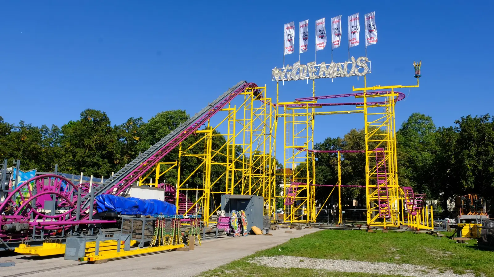 Das Oktoberfest 2023 findet vom 16. September bis 3. Oktober auf der Münchner Theresienwiese statt. Derzeit läuft der Aufbau, bei dem die Fahrgeschäfte aufgestellt werden.