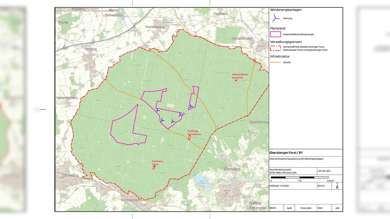 Die Planungen für den Windpark im gemeindefreien Gebiet im Ebersberger Forst schreiten voran. Der Projektträger konzentriert sich mittlerweile auf die östlich liegenden Standorte innerhalb der vom Kreistag freigegebenen Flächen.