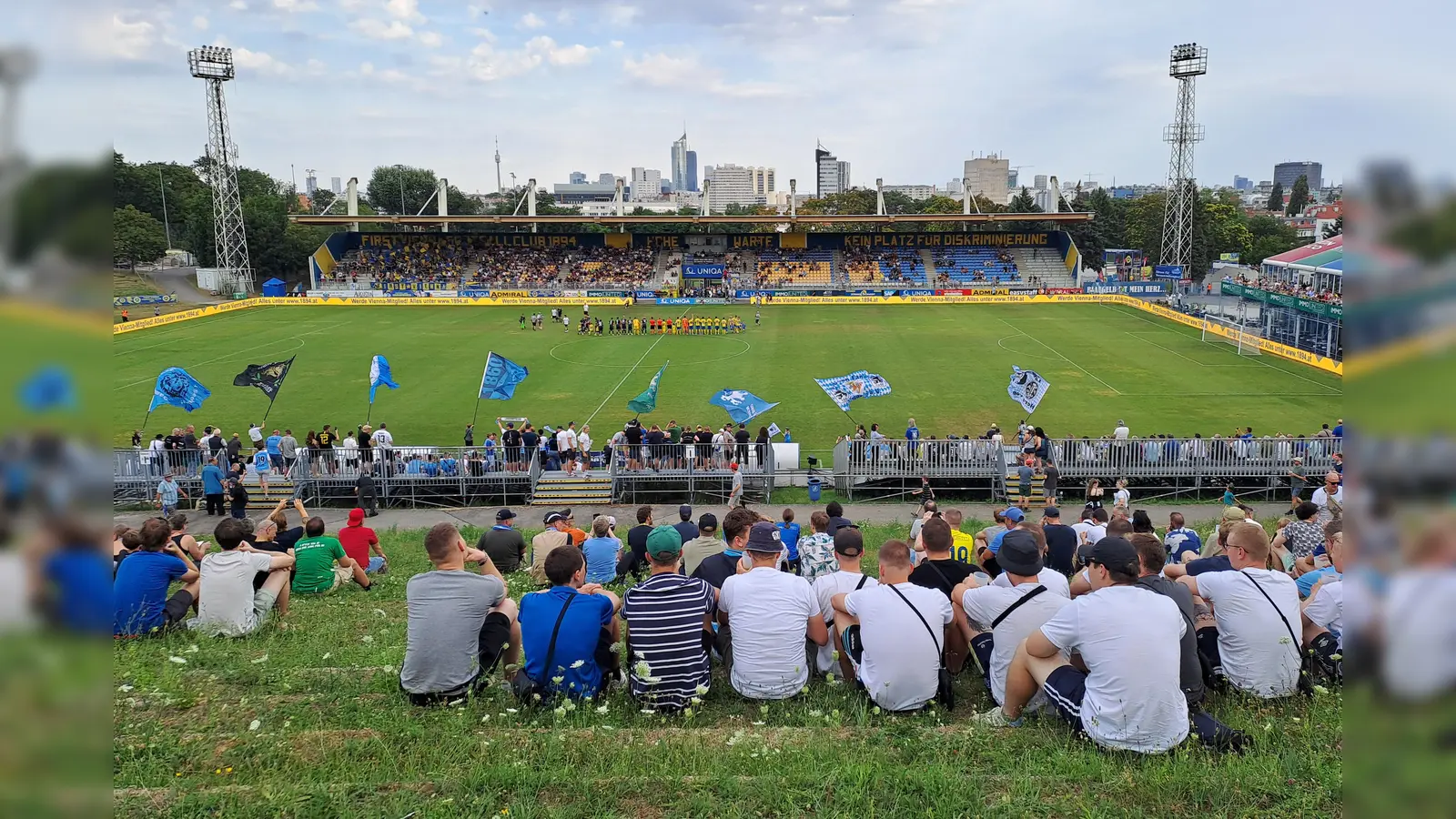 Mit 3.211 Anhängern auf den Tribünen war die Partie ordentlich besucht. Rund 1.000 davon dürften aus München angereist sein. Nach dem Spiel feierten Anhänger beider Klubs das zehnjährige Bestehen der First Vienna Football Club 1894 Supporters – der aktiven Fanszene der Döblinger. Schon am frühen Nachmittag hatten die Gastgeber für Interessierte eine Führung mit Vereinshistoriker Alexander Juraske über den Karl-Marx-Hof zum Stadion angeboten, der rund 40 Teilnehmer gefolgt waren. Sie staunten nicht schlecht, als sie hörten, dass die einem Amphitheater ähnelnde Wettkampfstätte mit ihrer imposanten Naturtribüne einst Platz für bis zu 80.000 Zuschauer bot. (as)
