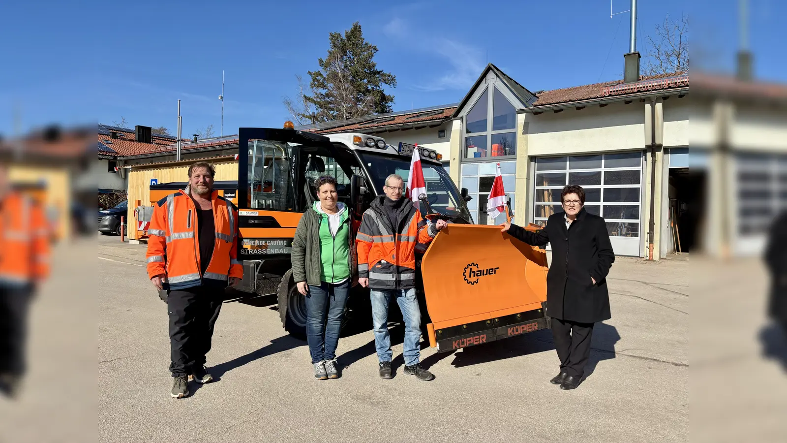 Nun stellten Bürgermeisterin Brigitte Kössinger, Bauhofleiter Johannes Roth, sein Stellvertreter Michael Füßl und Beatrice Bruns vom Bauhof das neue Fahrzeug vor. Inklusive eines Aufbaustreuers und eines Varioschneepflugs für den Winterdienst kostete der „Aebi Mehrzweck-Transporter“ knapp 300.000 Euro. „Wir haben überlegt, das Fahrzeug gebraucht anzuschaffen“, erklärte Bürgermeisterin Kössinger beim Ortstermin. „Aber dann wäre die Gewährleistung fraglich gewesen. Uns ist ein reibungsloser Einsatz sommers wie winters wichtig.“