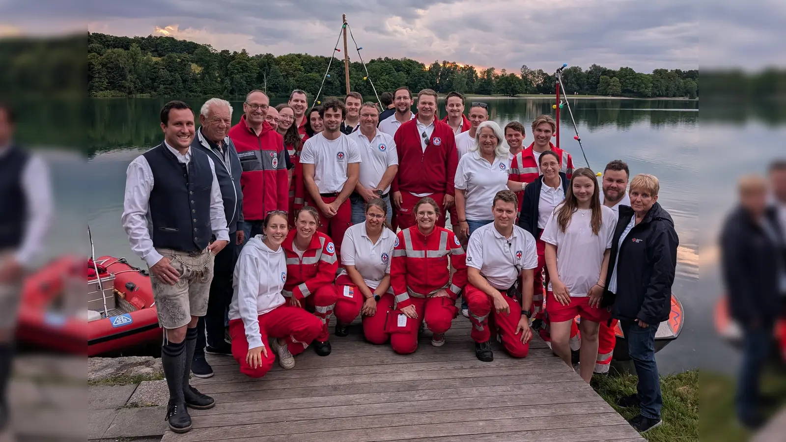 Traditionell lud die Wasserwacht anlässlich des Brillantfeuerwerks auf dem Siedlerfest zu einem gemütlichen Abend in der Wasserwacht-Station am Ufer des Sees ein. Neben den ehrenamtlichen Mitgliedern und Leitungskräften der Wasserwacht wie Tobias Gierlinger waren auch der BRK-Kreisvorsitzende Bernhard Seidenath und seine Stellvertreterin Angelika Gumowski gekommen.