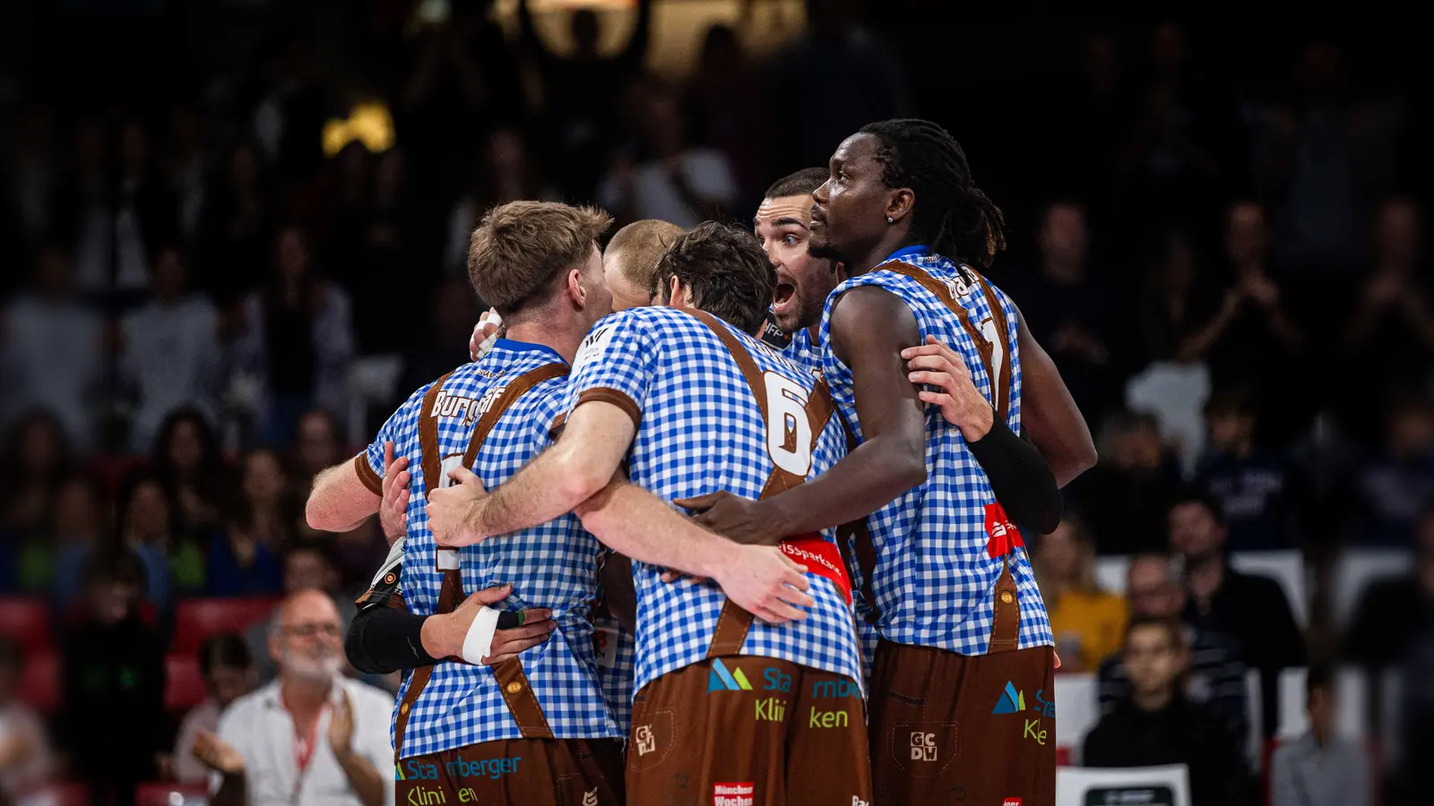 Da der dritte Platz bereits vor dem Spiel nicht mehr möglich war, ging es im finalen Heimspiel nur darum, gegen wen es in den Play offs gehen würde - Düren oder Giesen. Die Powervolleys Düren schoben sich bereits am Freitag dank eines überzeugenden 3:0-Sieges gegen Freiburg auf Rang fünf. Mit einem Punktgewinn hätten die Giesener den fünften Platz wieder zurückerobern können. Und eineinhalb Sätze sah es nicht danach aus, dass den Niedersachsen dieses Unterfangen gelingen würde. „Wir sind richtig angezündet ins Spiel gestartet“, meinte John. Nach einem souveränen ersten Satz (25:16) und einer 14:10-Führung im zweiten Durchgang kamen die Gäste besser ins Spiel. Auch, oder weil Ranner ordentlich durchrotierte? Der 37-jährige Cheftrainer wollte die vielen personellen Wechsel gelten lassen. „Wir haben uns das erarbeitet, dass wir diese Wechsel vornehmen konnten.“ So bekamen die Stammspieler Daniel Gruvaeus, Magloire Mayaula, Eric Burggräf und später auch Filip John eine Verschnaufpause. Einige von ihnen waren ohnehin angeschlagen. Und die auf die Platte kamen, machten es mehr als ordentlich.